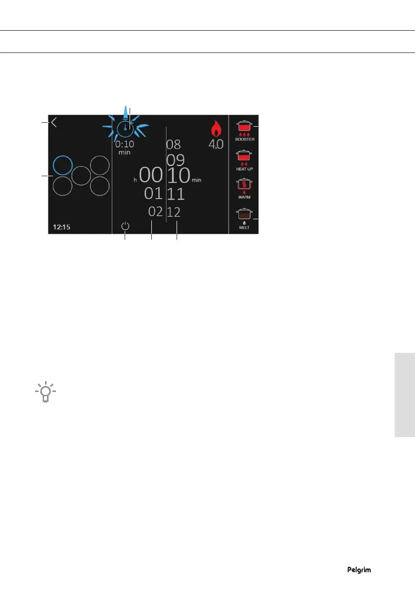 ▷ The blue cooking zone is active; the timer can be set for this cooking zone.
