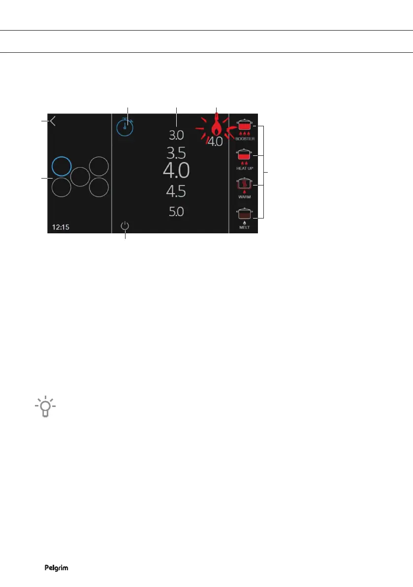 ▷ Raak een andere kookzone aan om hiervoor het vermogen te gaan instellen.