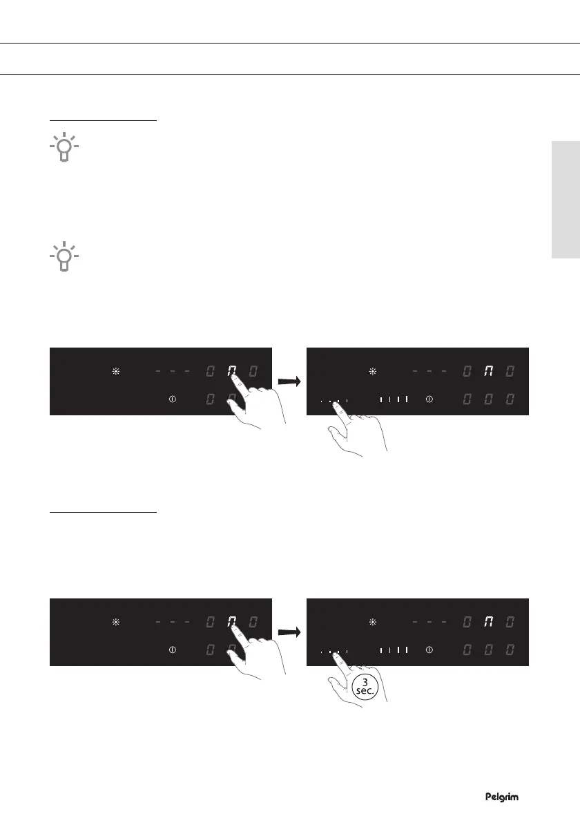▷ Raak 3 seconden het linker gedeelte van de schuifregelaar aan om de afzuiging uit te