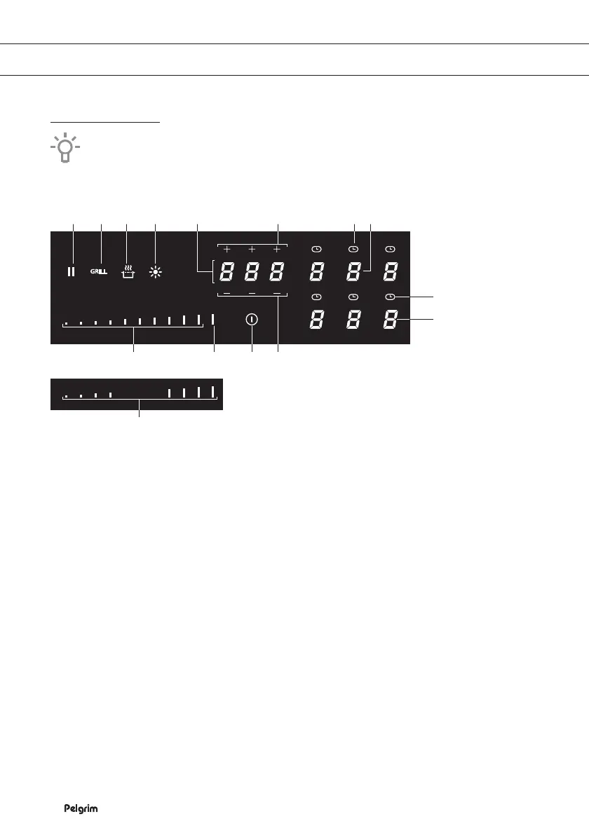 8. Toets en display voor de gekoppelde afzuigkap (alleen bruikbaar indien gekoppeld aan een