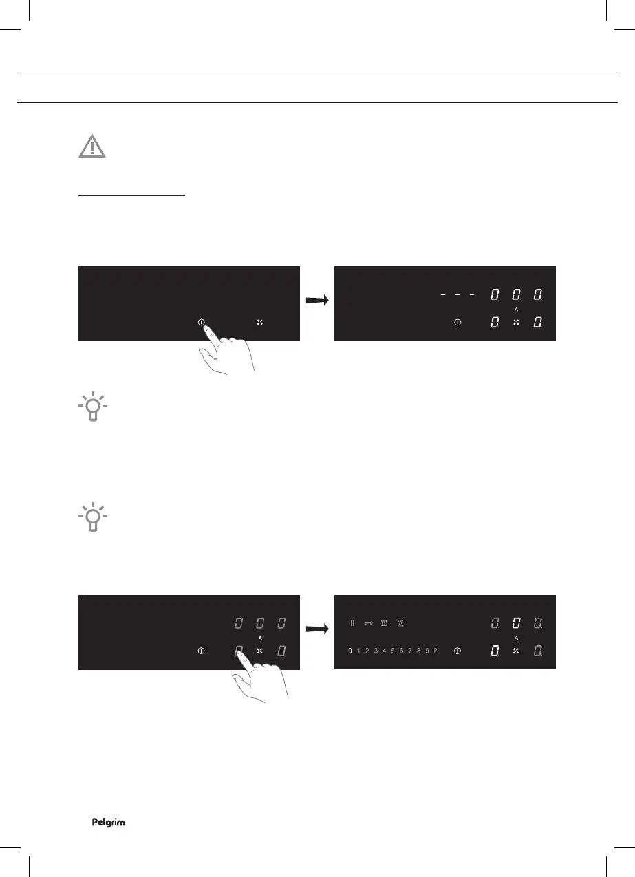 ▷ De displays lichten op; de inductiekookplaat staat in de stand-by modus.