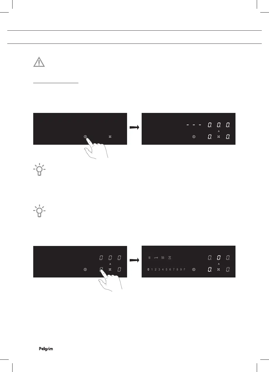 If the hob is not used for 20 seconds, it will shut off automatically.