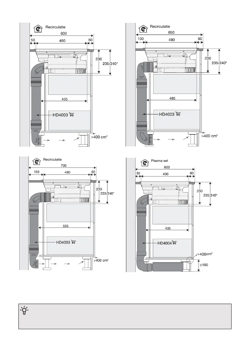 • De wanden en het werkblad rondom het toestel moeten minimaal tot 105 °C hittebestendig zijn.