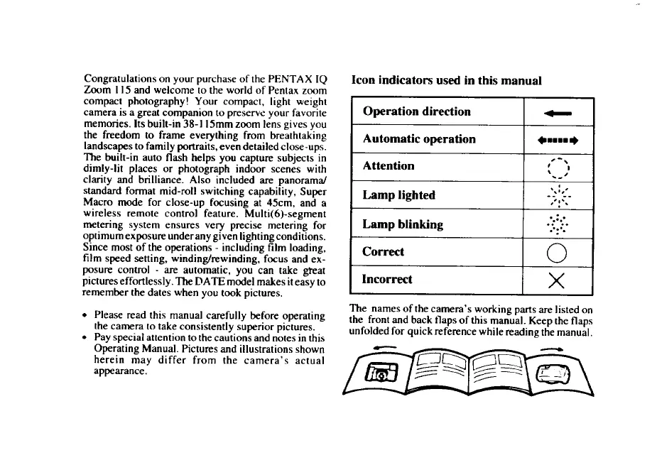 Bekijk gratis de handleiding van Pentax IQZoom 115, stel vragen en lees de antwoorden op veelvoorkomende problemen, of gebruik onze assistent om sneller informatie in de handleiding te vinden of uitleg te krijgen over specifieke functies.