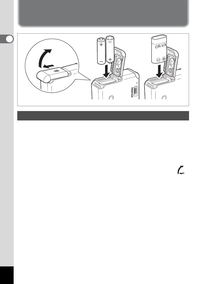 Install batteries in the camera. Use one CR-V3, or use two AA lithium
