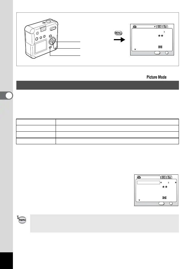 • In movie picture mode, select from 320×240 or 160×120. 1p.65