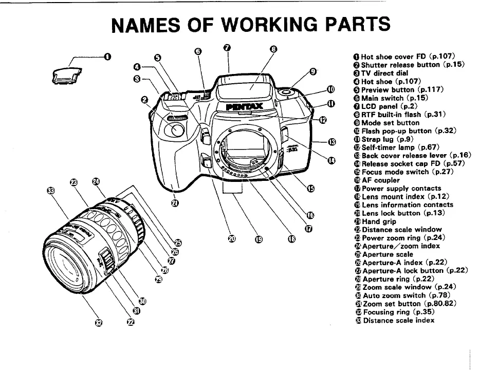Bekijk gratis de handleiding van Pentax PZ-1P, stel vragen en lees de antwoorden op veelvoorkomende problemen, of gebruik onze assistent om sneller informatie in de handleiding te vinden of uitleg te krijgen over specifieke functies.