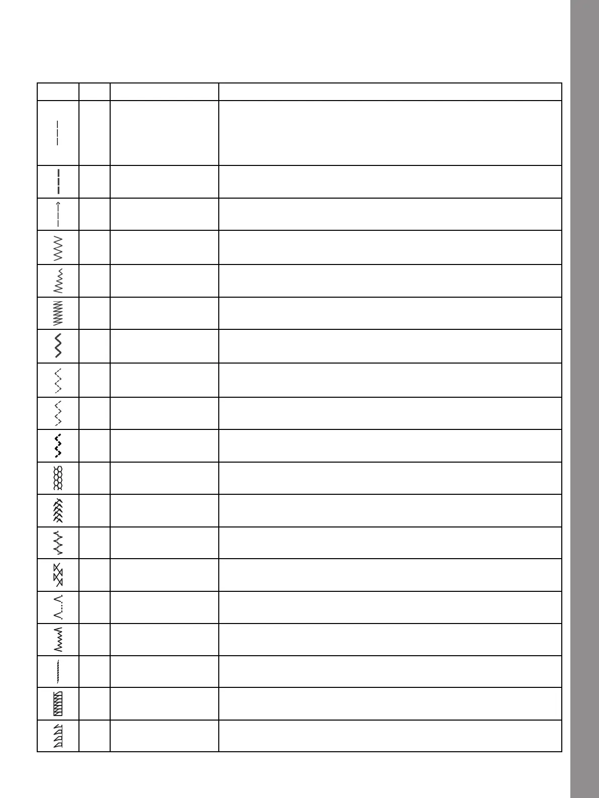 Zigzag stitch Reinforce seams, clean finish, stretch sewing, lace insertion.