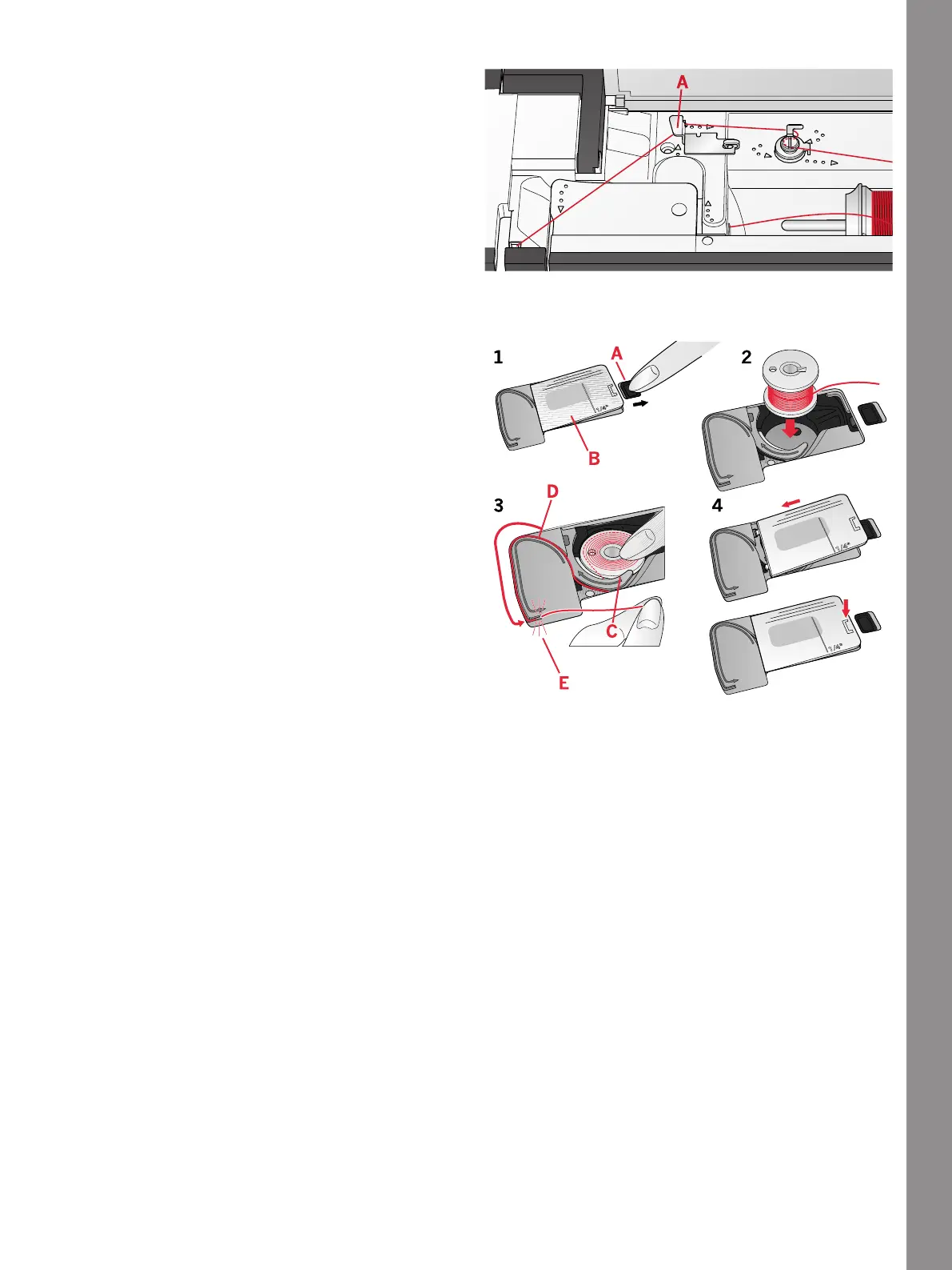 inrijggleuf en door de onderdraadgeleider (A). Volg dan