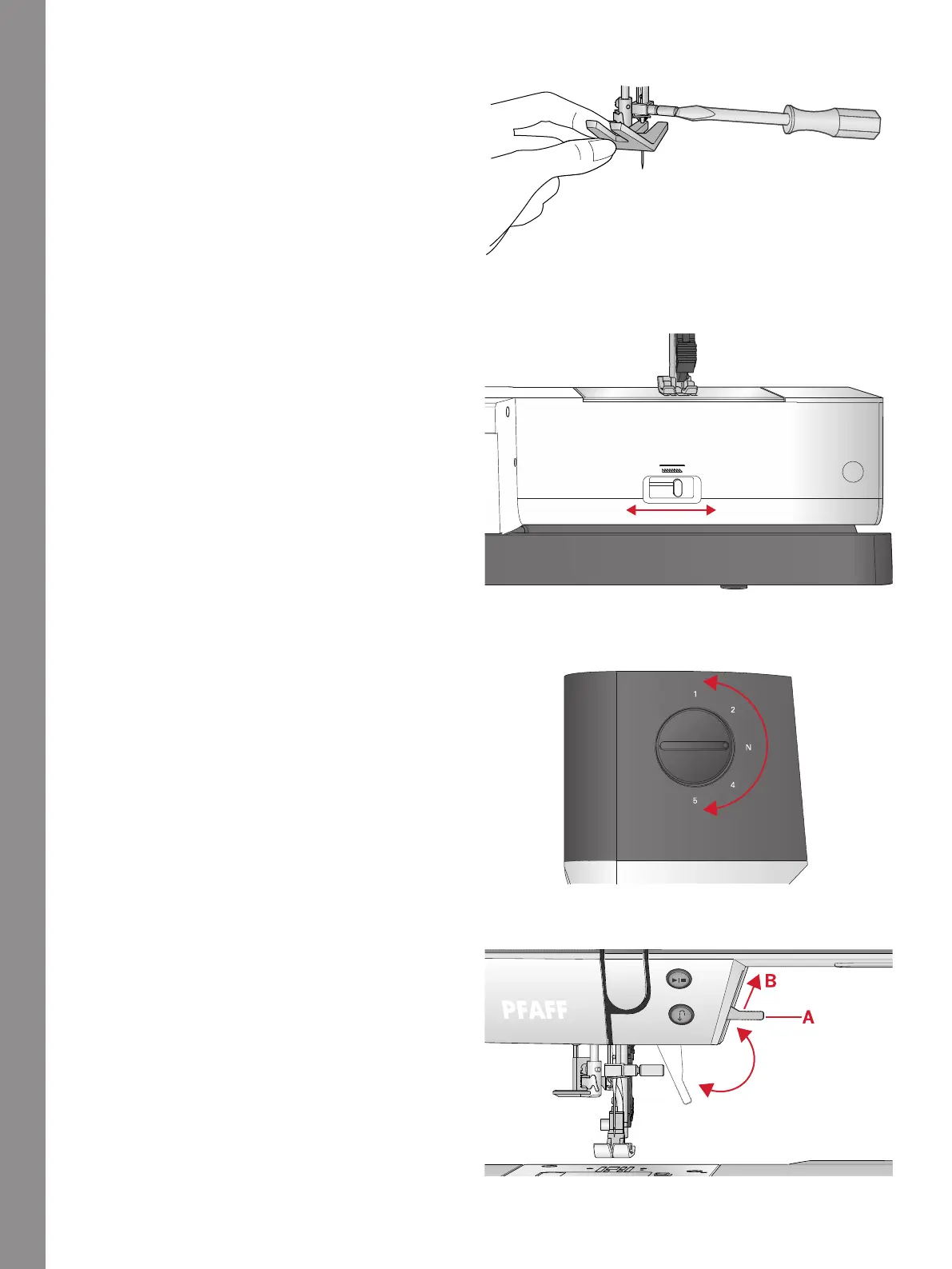 5. Draai de schroef van de naald zoveel mogelijk aan.
