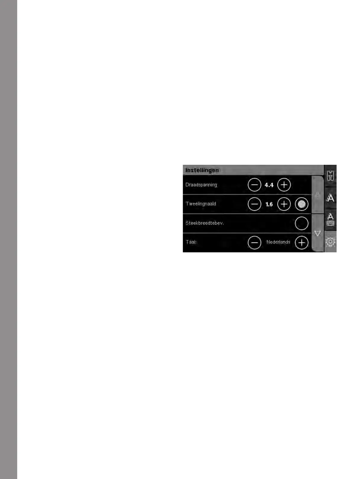In het menu Instellingen kunt u de naaimachine-