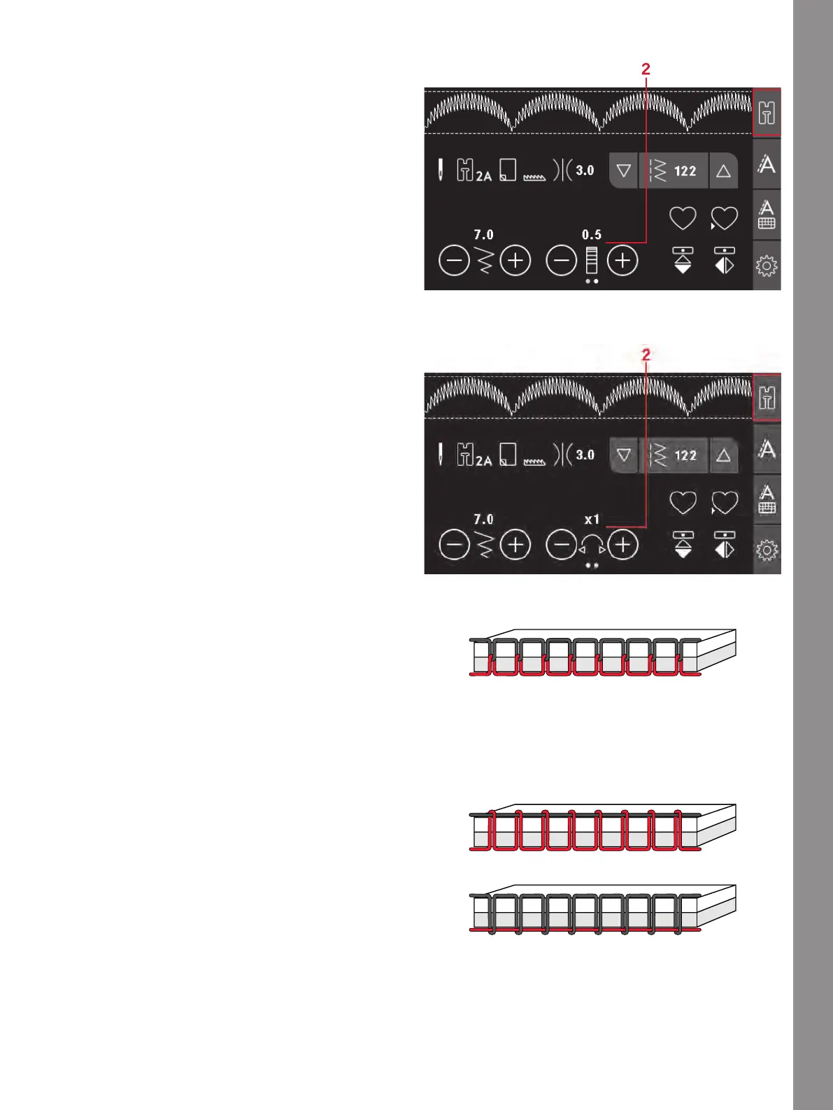 bovendraad zichtbaar zijn op de onderkant van de stof.
