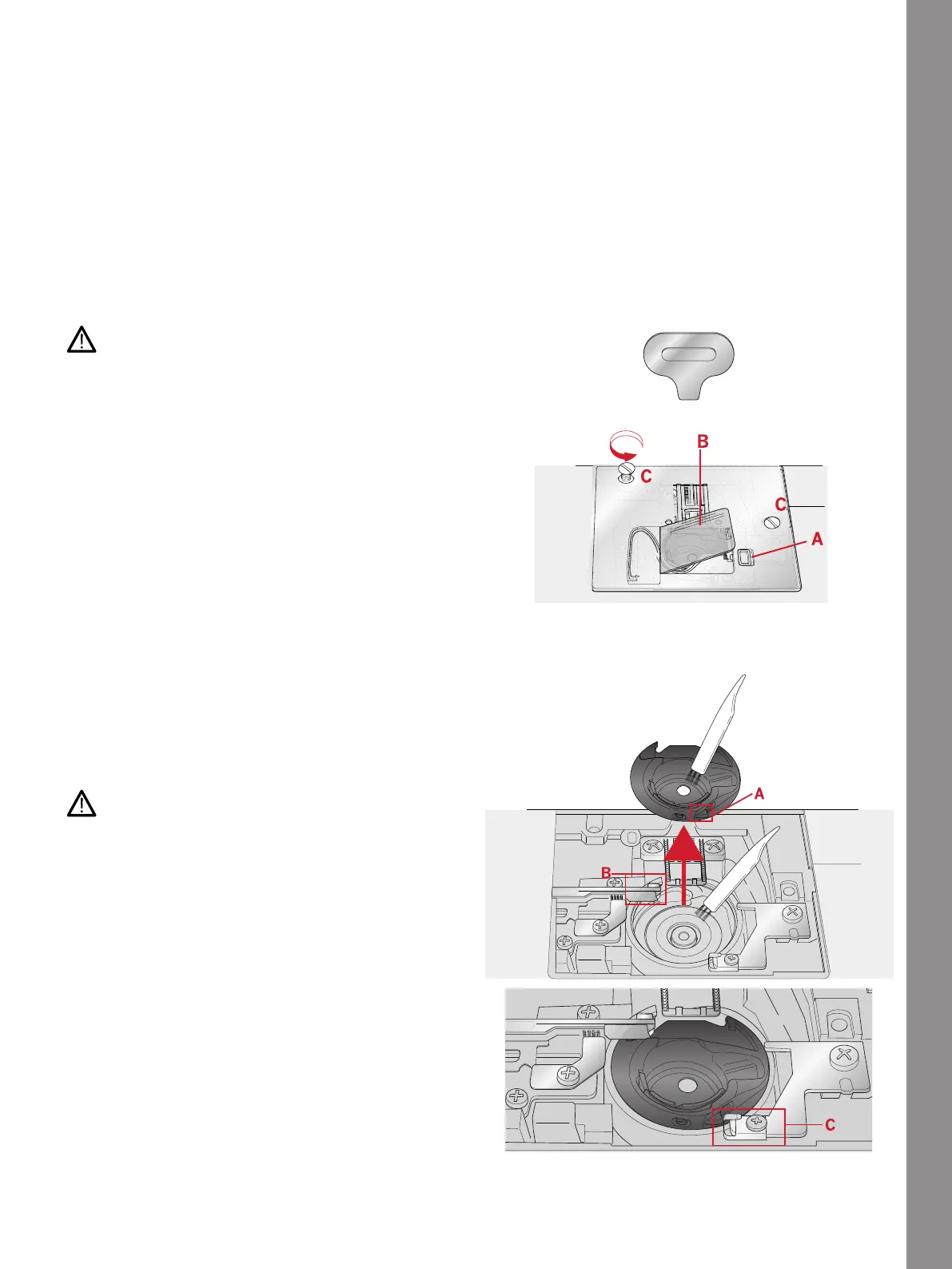 De naaivoet verwijderen. Duw het ontgrendelknopje