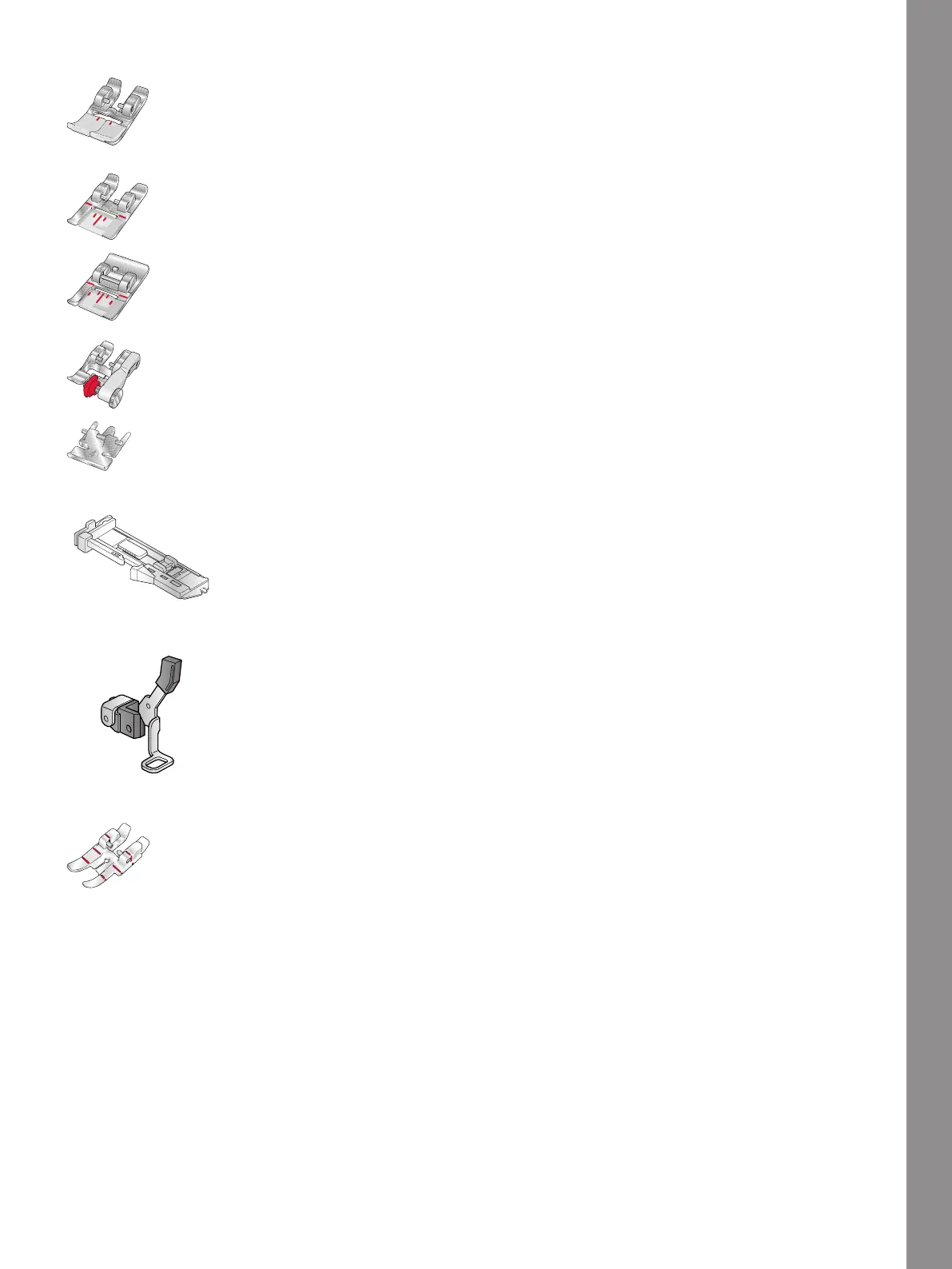 Deze voet wordt gebruikt voor het maken van decoratieve steken. De groef in de onderkant