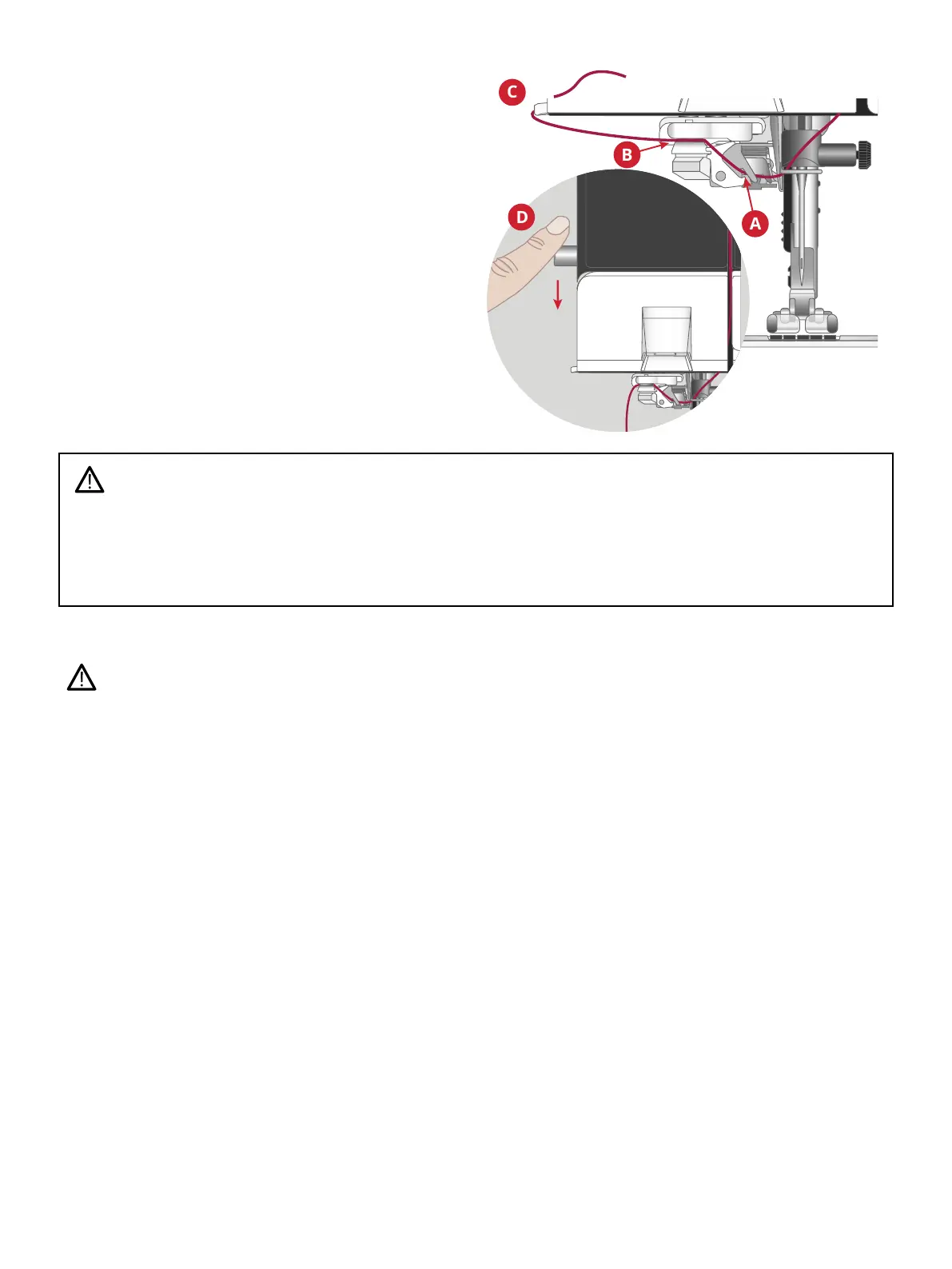 Unsuitable combinations, such as using a heavy weight thread for a fine needle, may cause damage to the needle threader.