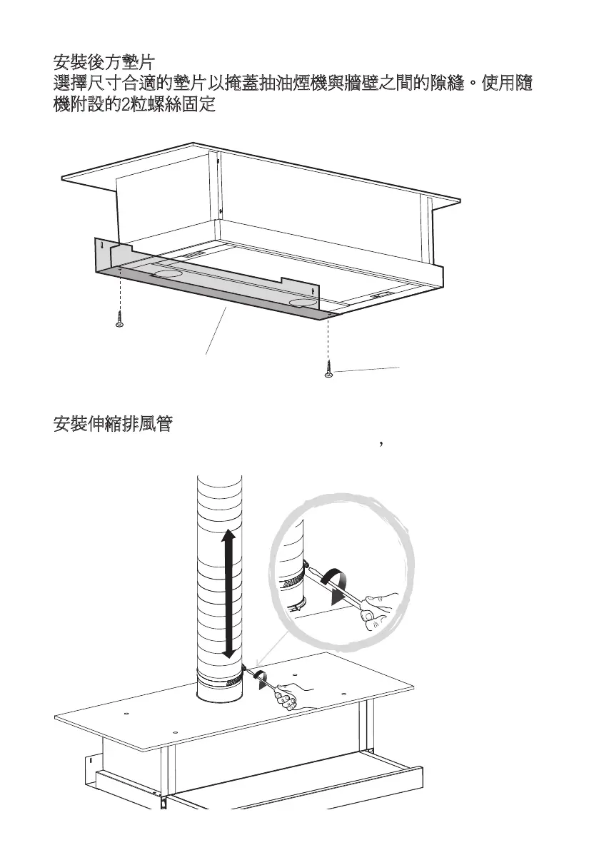 選擇尺寸合適的墊片以掩蓋抽油煙機與牆壁之間的隙縫。使用隨