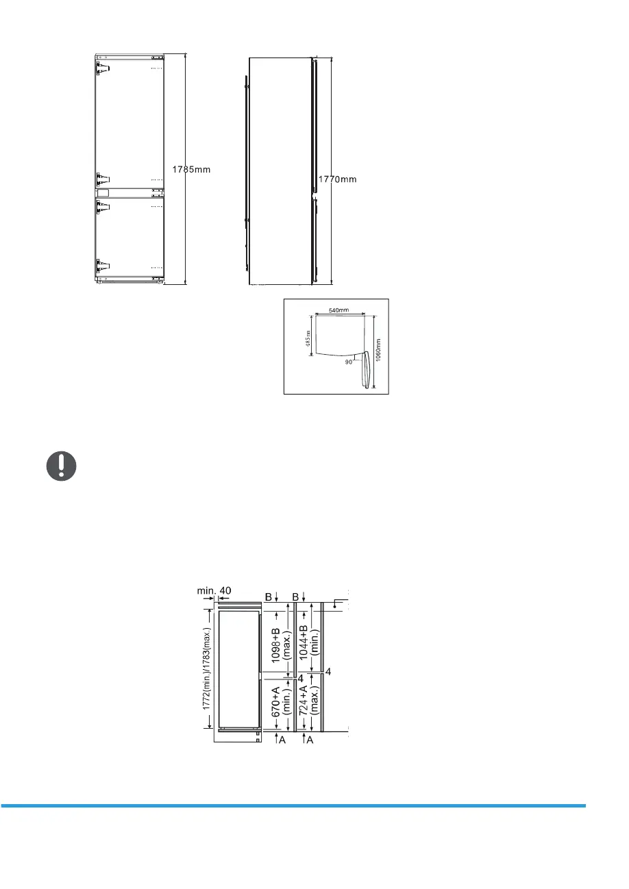 The specied unit dore dimensions are valid for a door gap of 4mm.