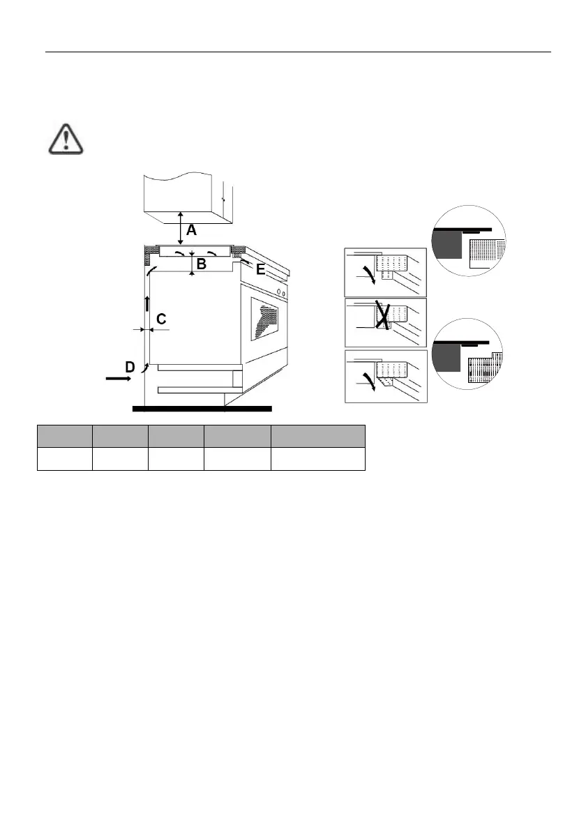 如果爐具安裝在焗爐之上,焗爐應設有內置冷卻風扇。