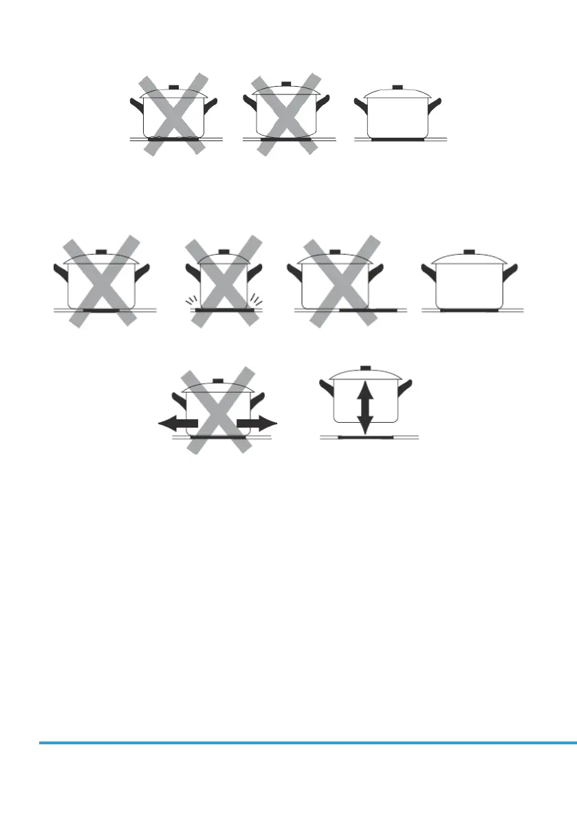 Always lift pans o the Induction hob – do not slide, or they may scratch the glass.