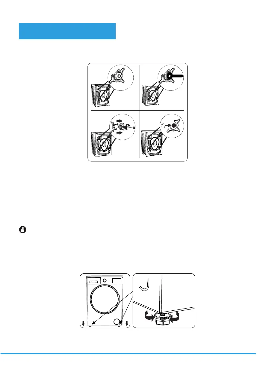 1. Before operating the washing machine, remove the 4 transit bolts and rubber spacers from the rear of the