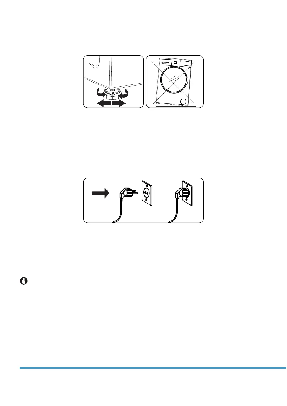 2. To increase the height of the machine, turn the feet clockwise. To decrease the height of the machine, turn