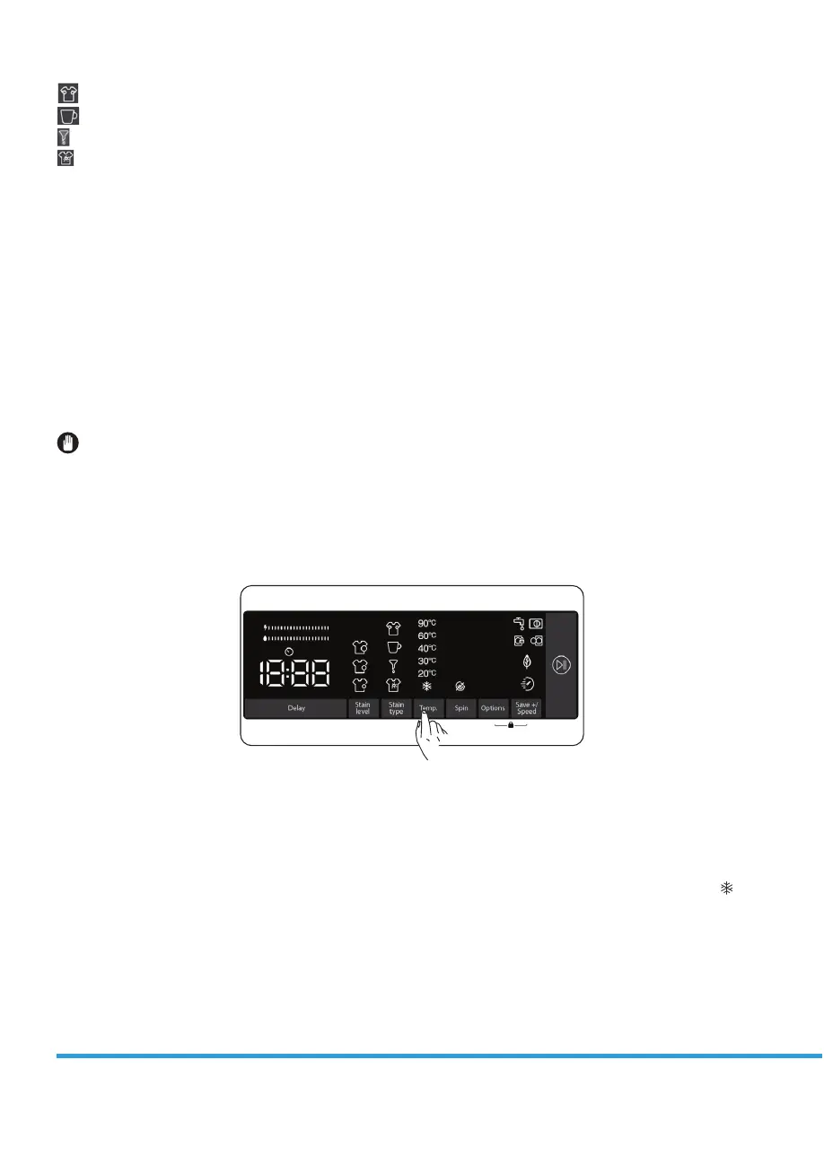 4. Selecting the washing water temperature
