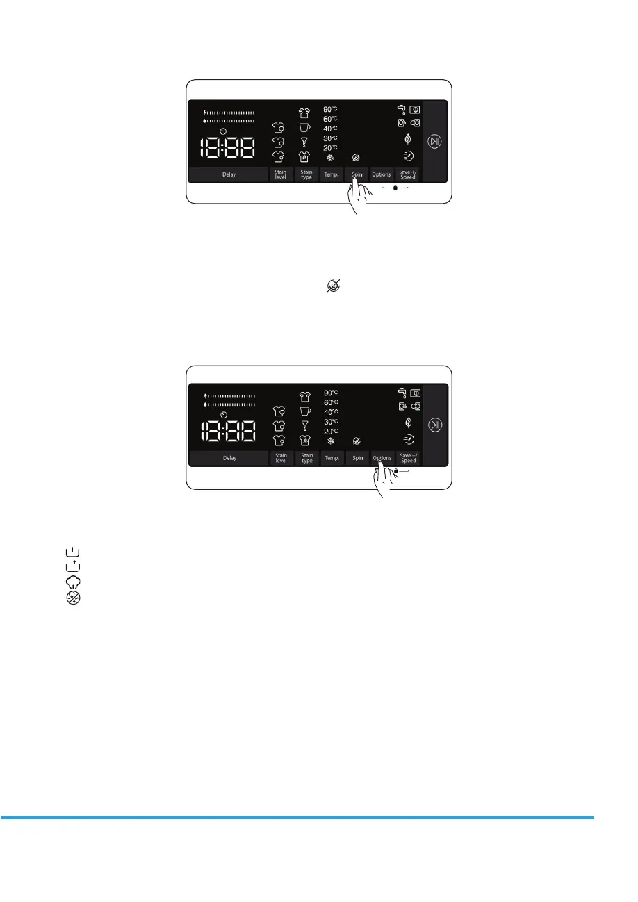 If you have skipped the spin speed you wanted to set, you can keep pressing the spin speed key to nd the