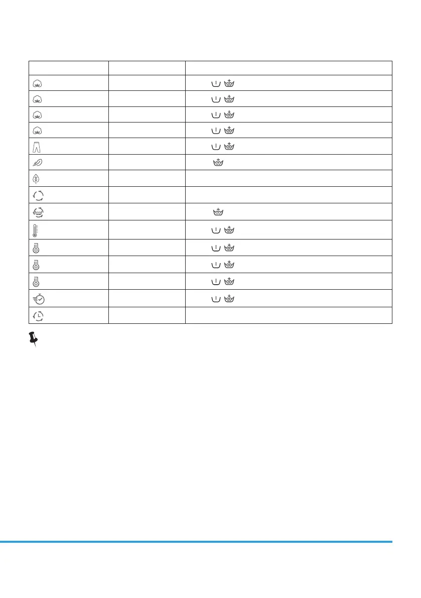Cycle Default Temp (°C) Additional functions