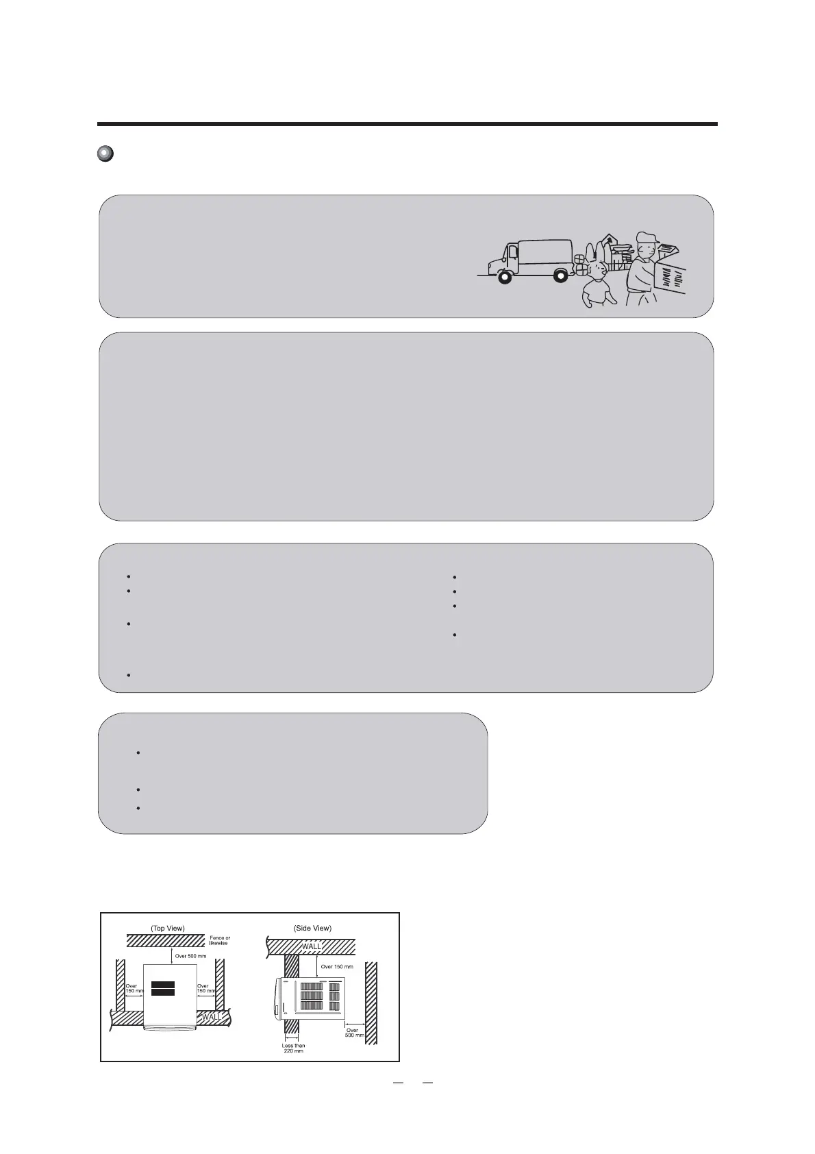 The outdoor distance from obstructions should be over 150mm (above, left, right)