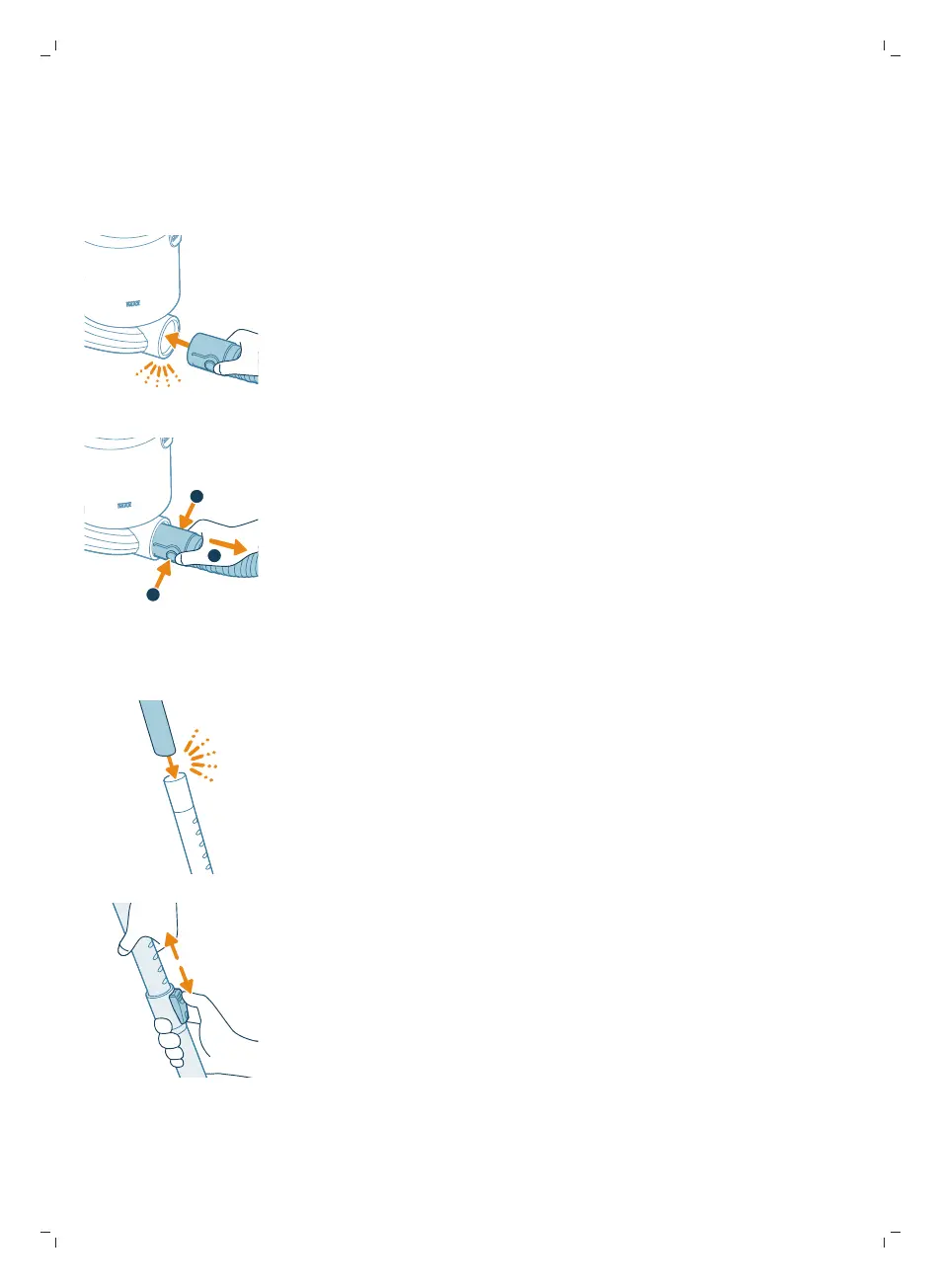 1 Per collegare il tubo telescopico all'impugnatura del tubo flessibile, allineate il