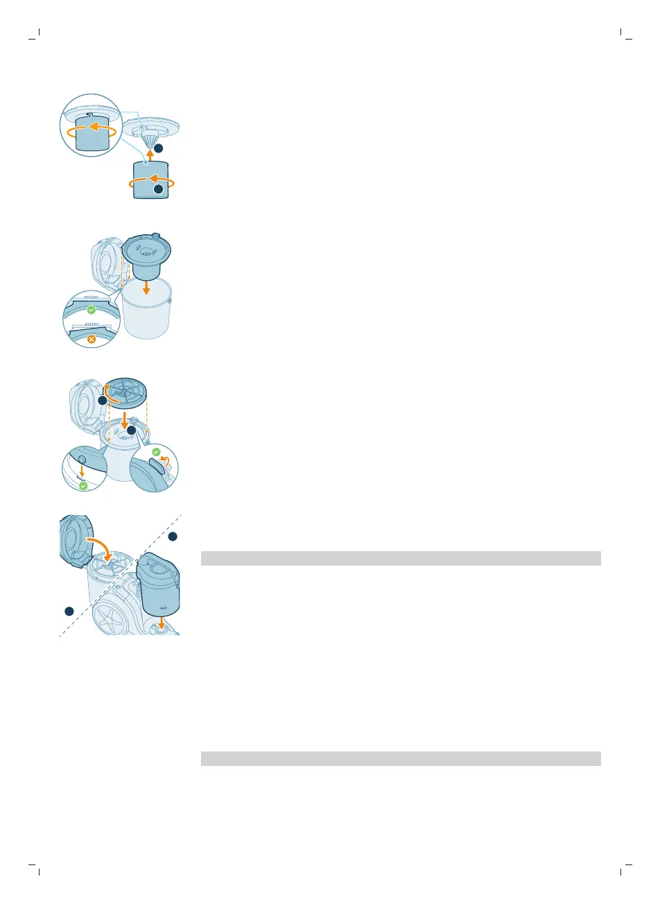 13 Chiudete il coperchio e riposizionate il contenitore della polvere