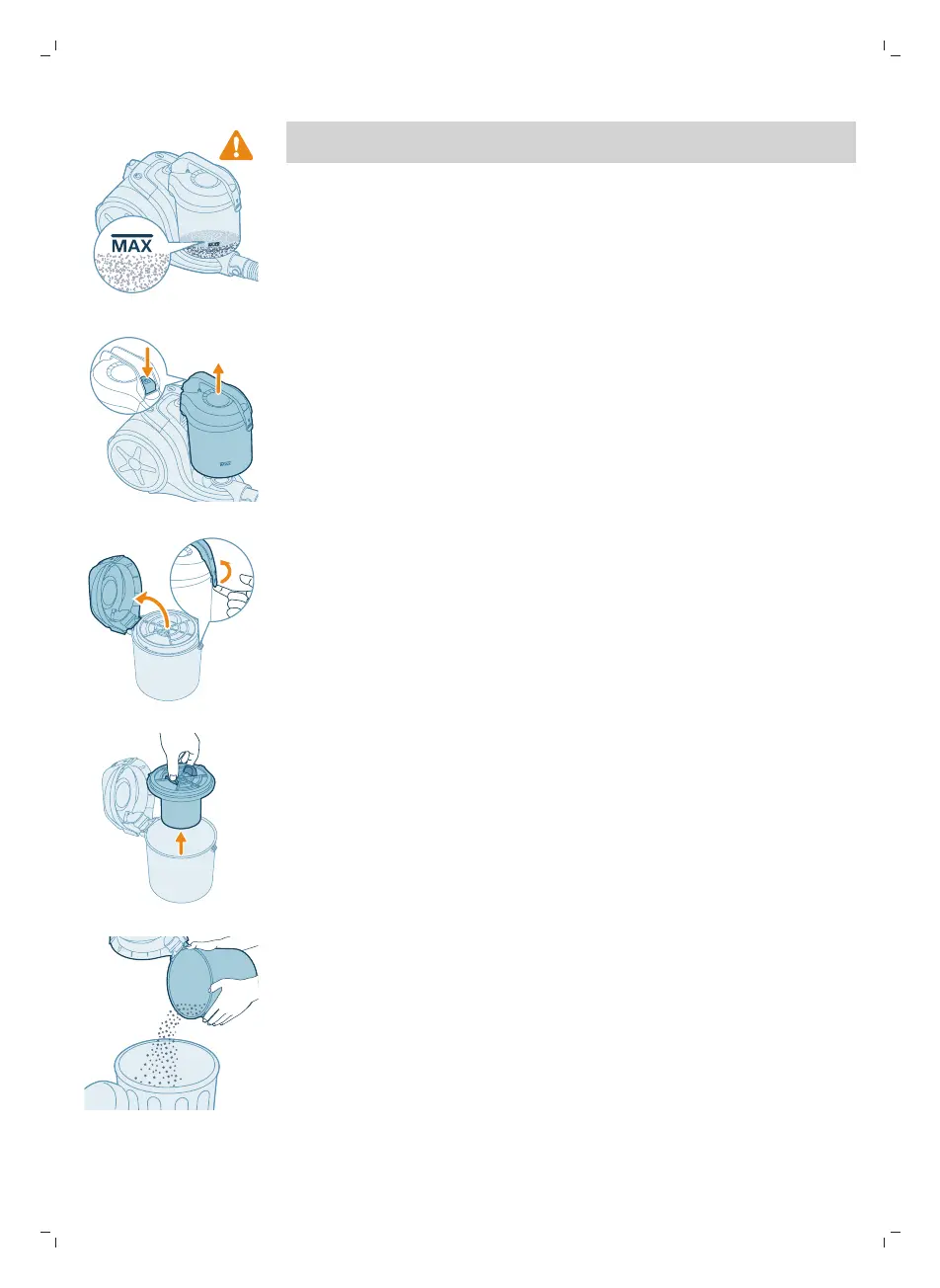 Nádobu na prach vždy vyprázdněte, když prach dosáhne rysky maximální úrovně.