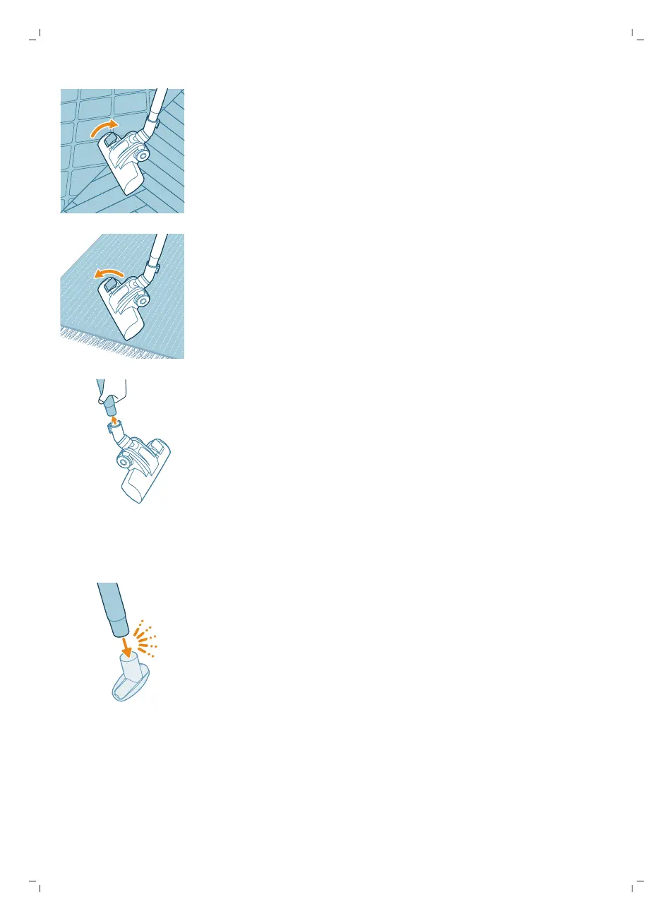 multifunktionsmundstykket bagud med foden. Børsten til rengøring af hårde