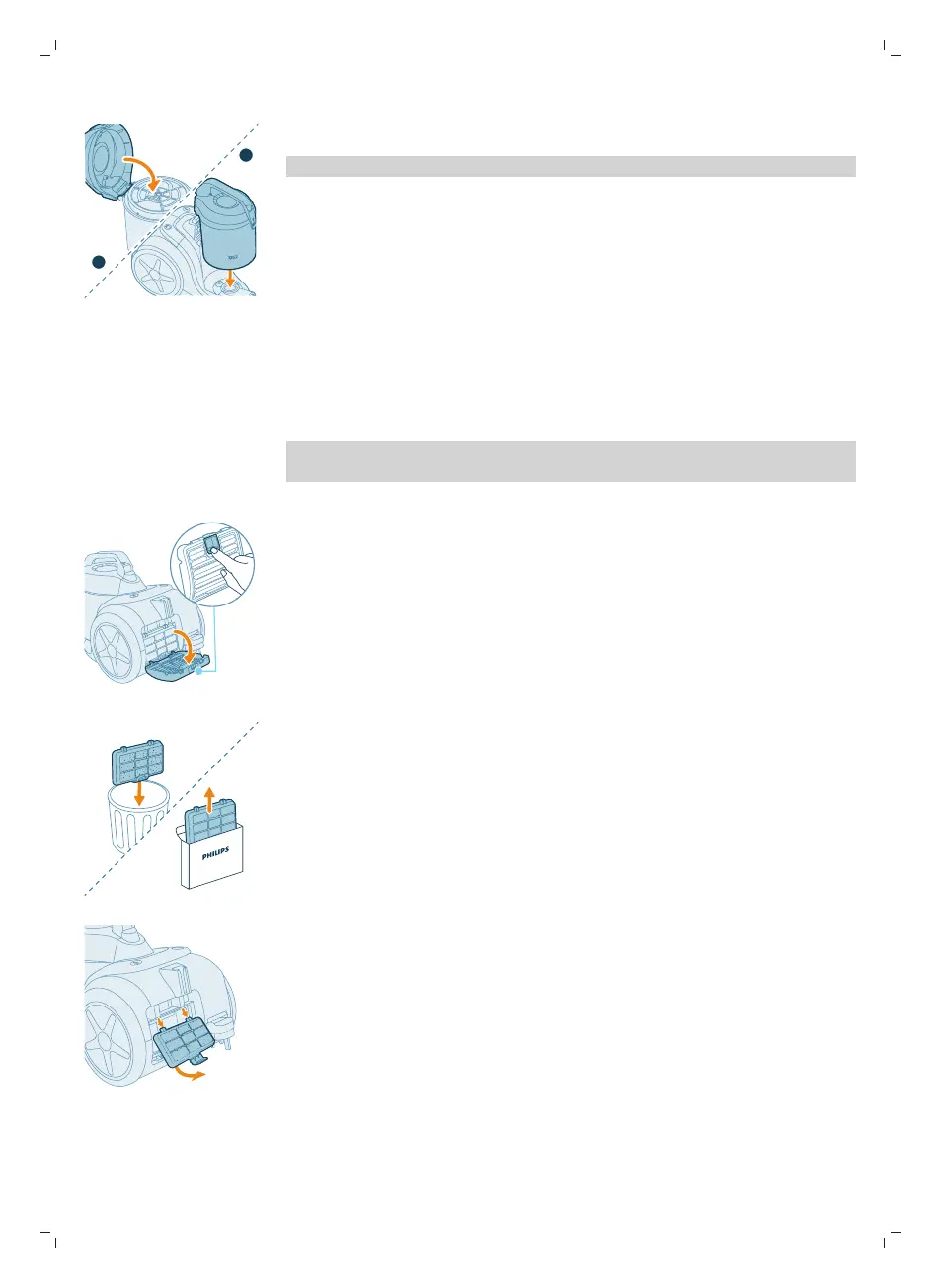 13 Luk dækslet, og sæt støvbeholderen på plads i støvsugeren.
