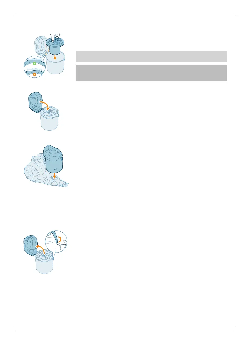8 Vuelve a insertar la cubeta para el polvo en el aparato.
