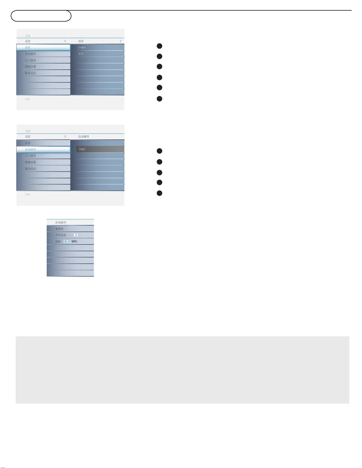 ‧在打開包裝并接通這台新電視的電源后,立即進行自動搜尋功能設置電視,使其記憶您所在地區