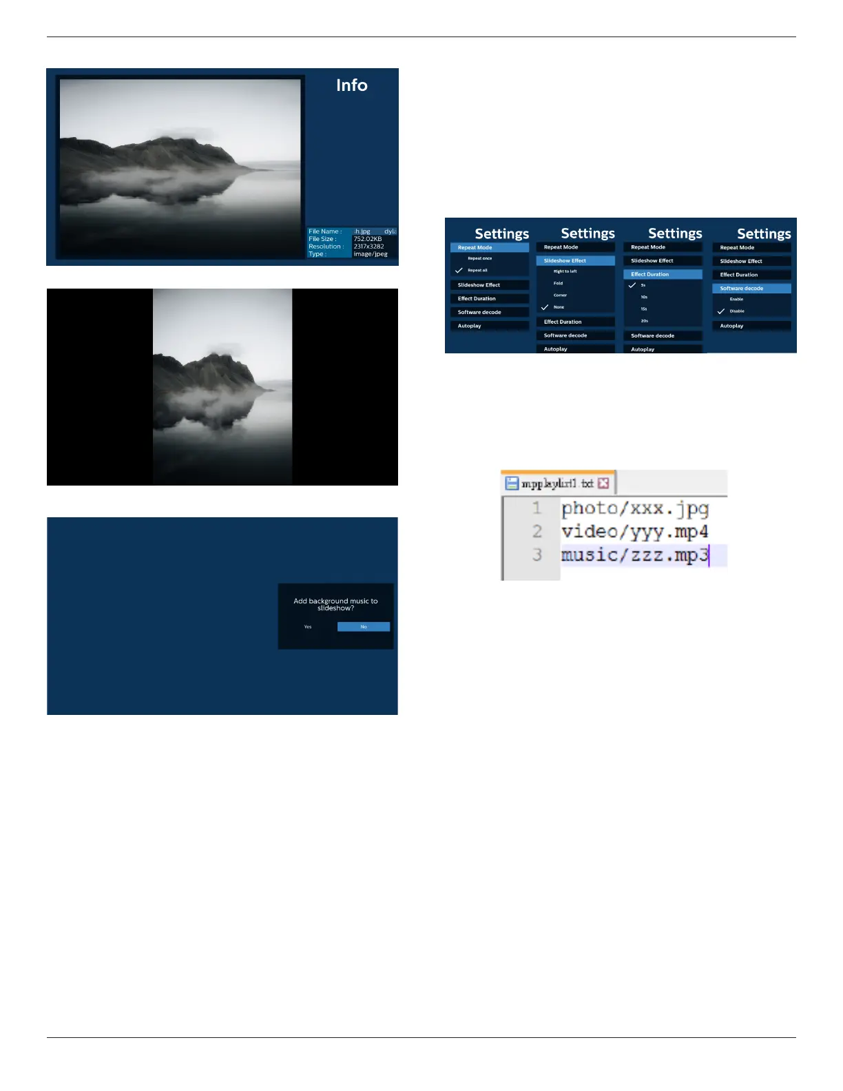 註: 播放清單檔(文字)匯入後,若使用者透過遙控器變更播放