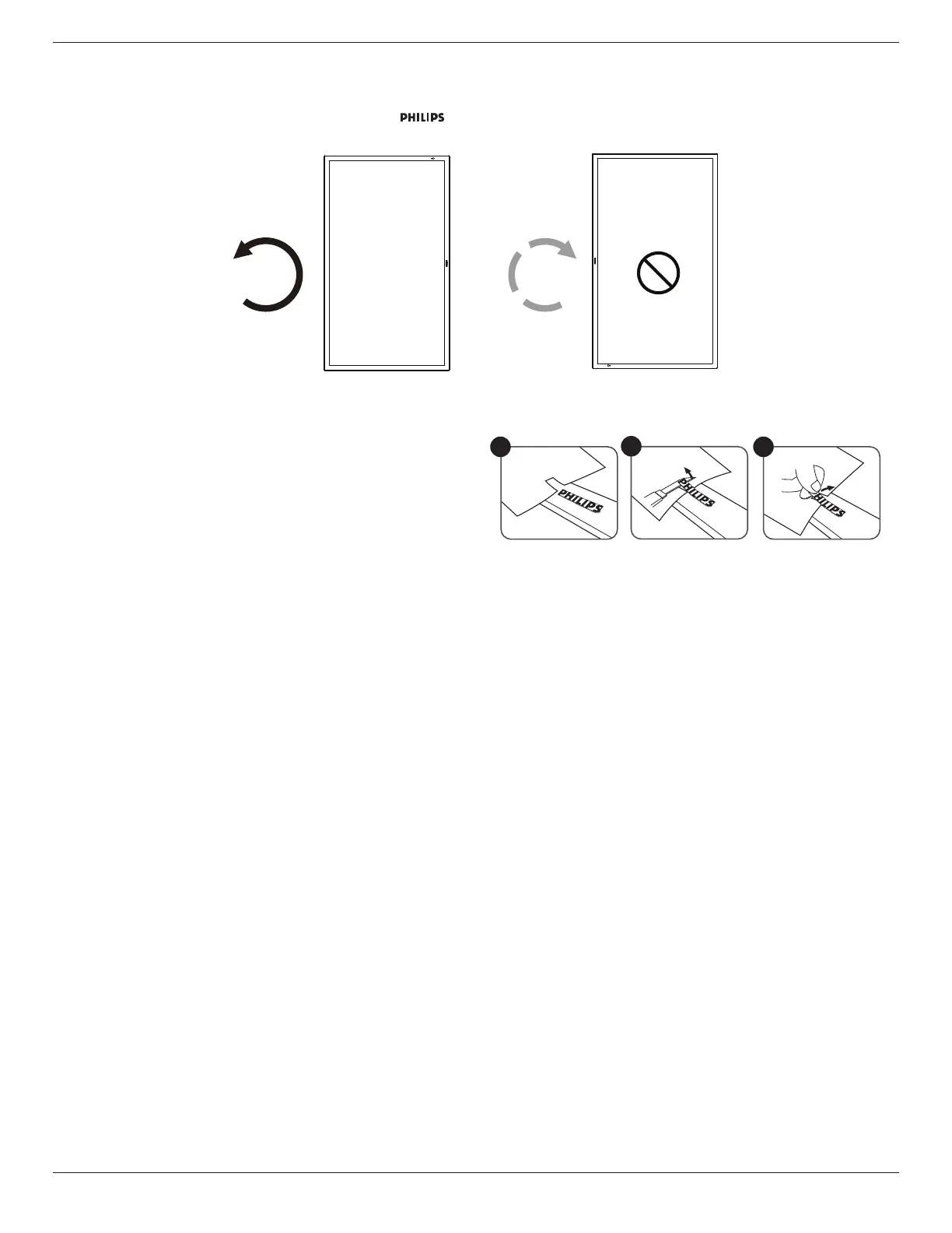 Rotate the display 90 degrees counterclockwise. The “ ” logo should be on the right side when facing the display.