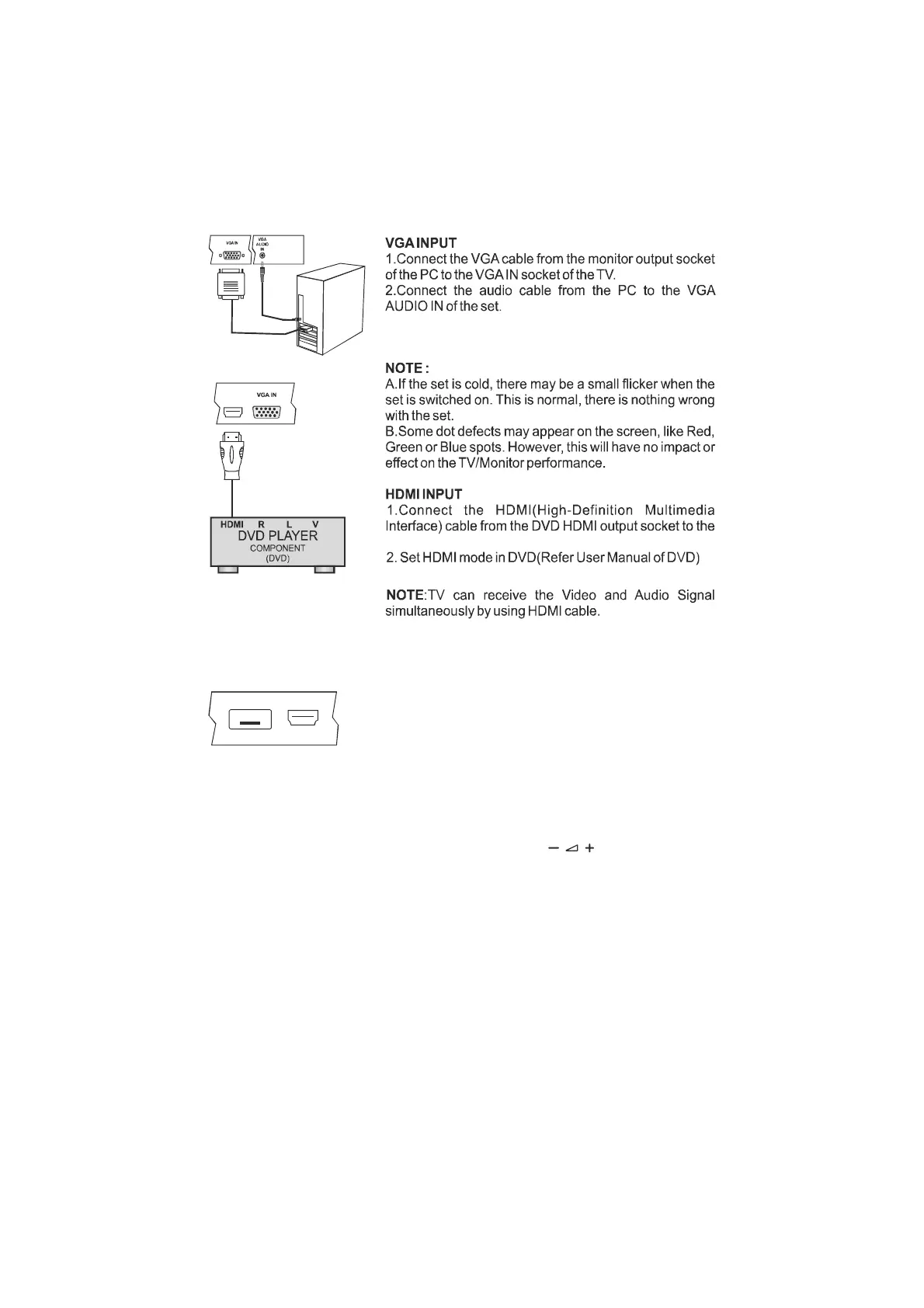 1) CH+/CH- keys on remote are represented by - CH + on TV set.