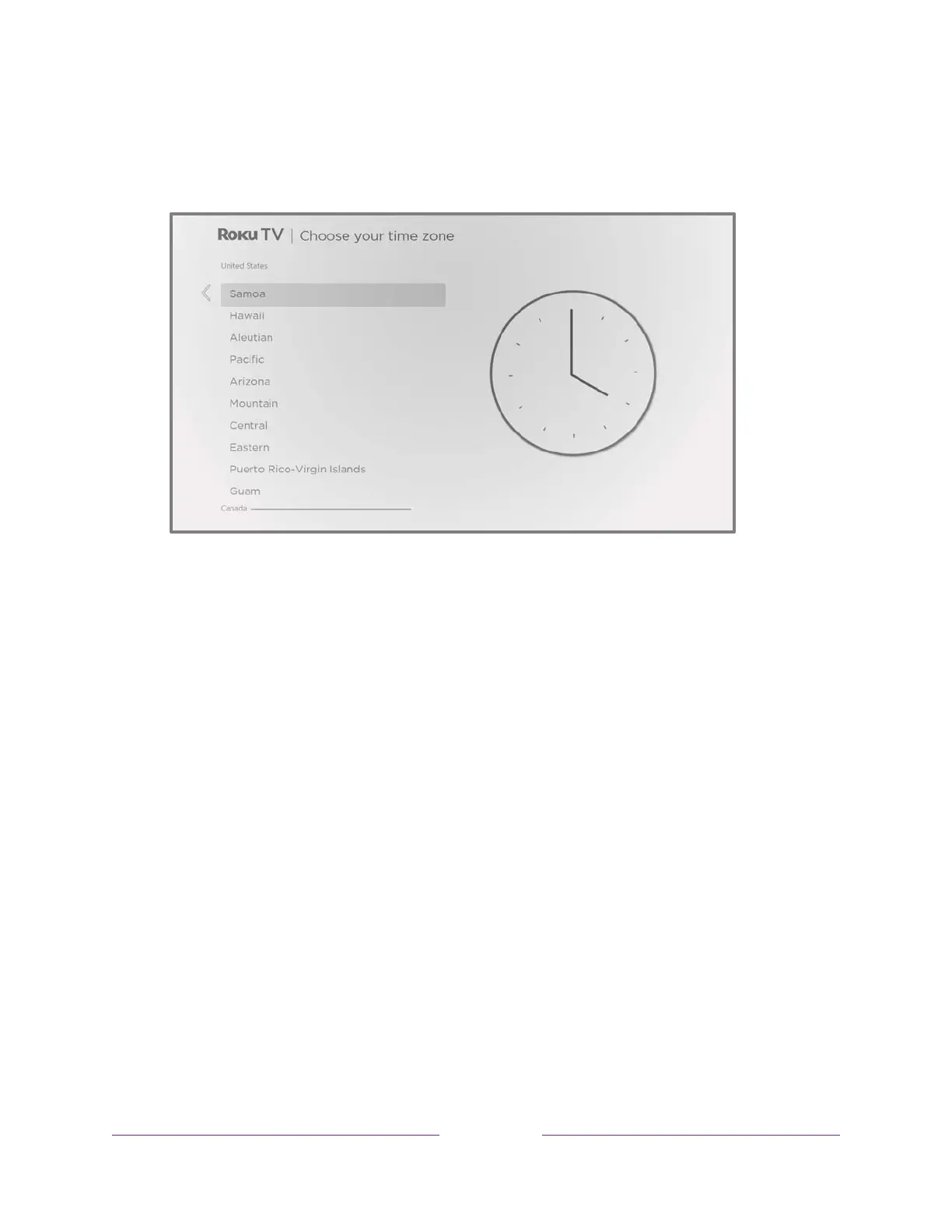 : The Choose your time zone screen appears. Press