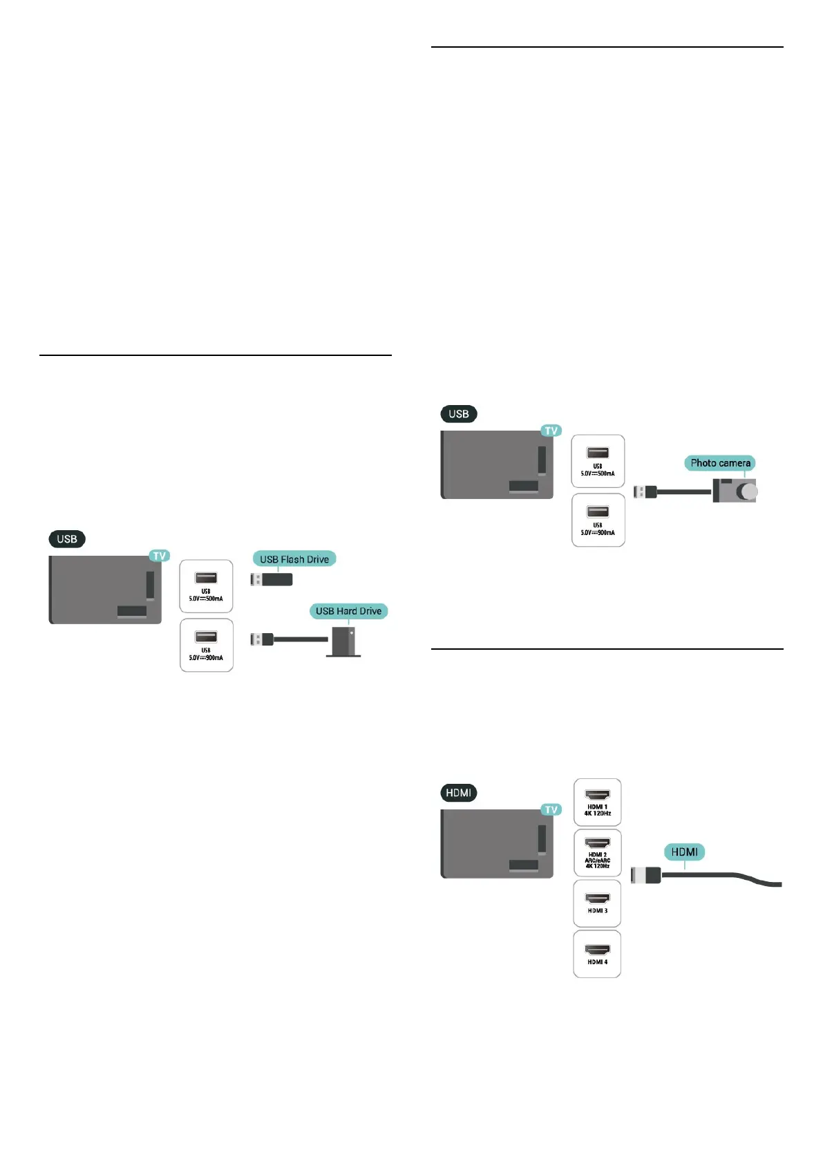 在電視開啟時,將 USB 儲存裝置插入電視上其中一個