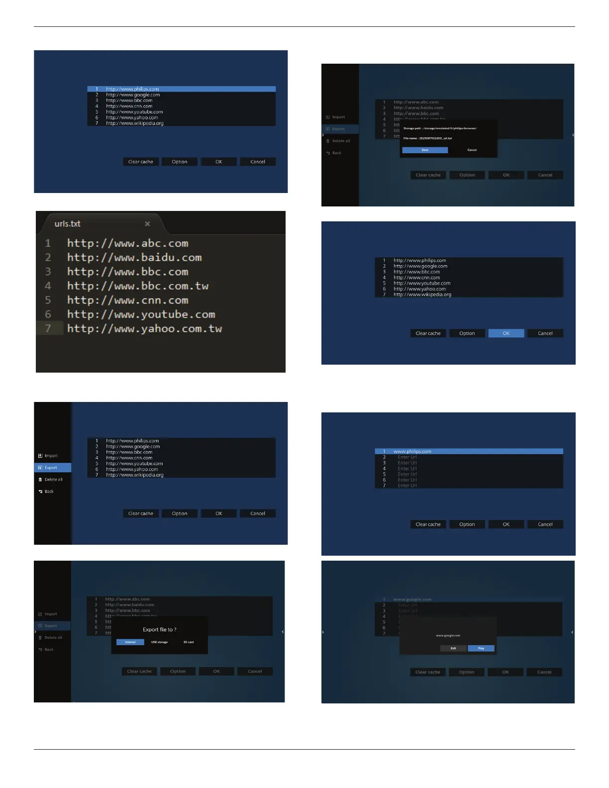 • 匯入瀏覽器檔案,URL 將在畫面上列出。