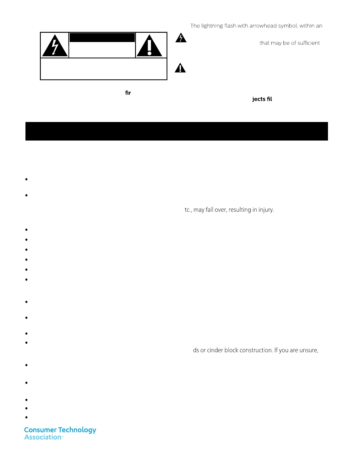 ALWAYS use a mount that has been recommended by the television manufacturer and has a safety certification by