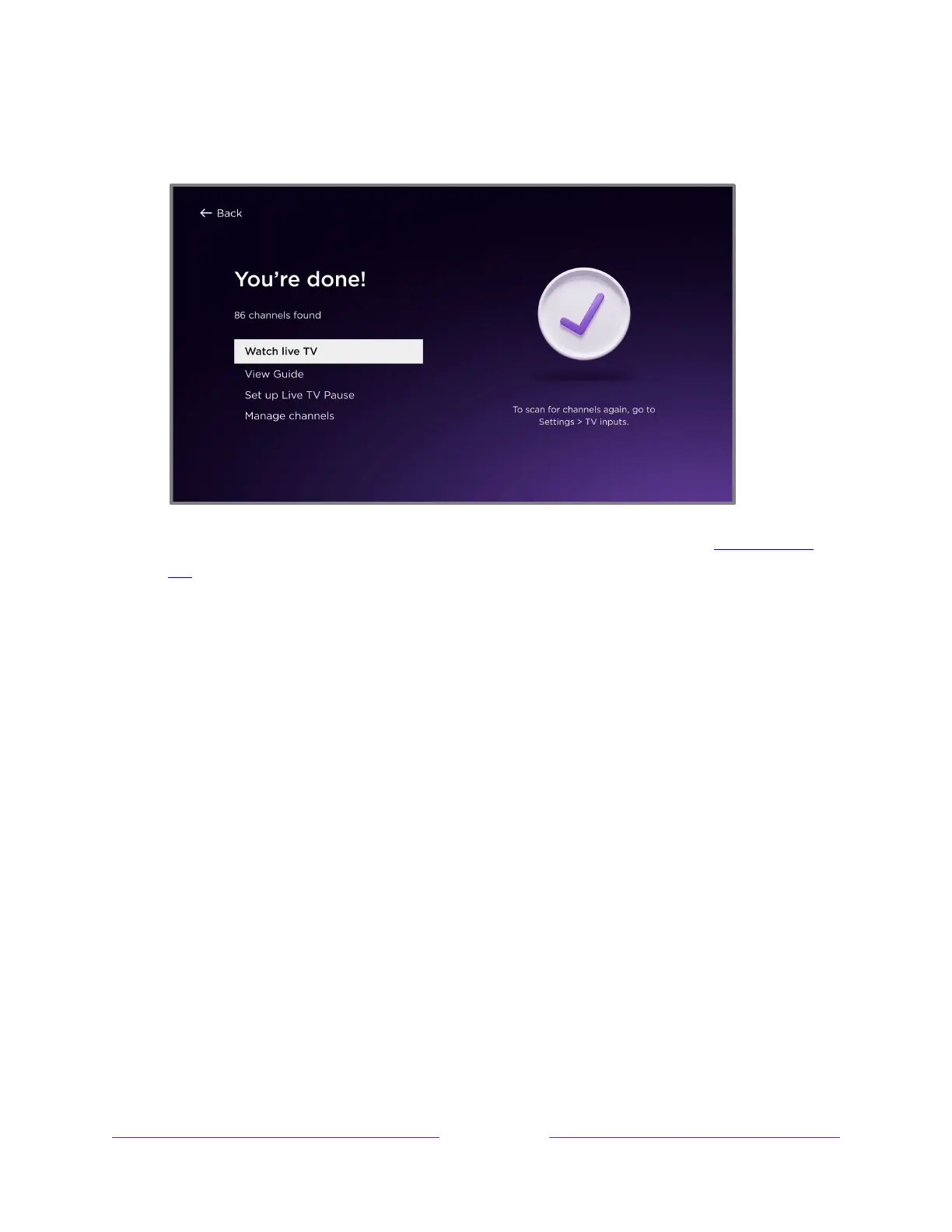 broadcasters in your area. To repeat the channel scan, use the purple directional