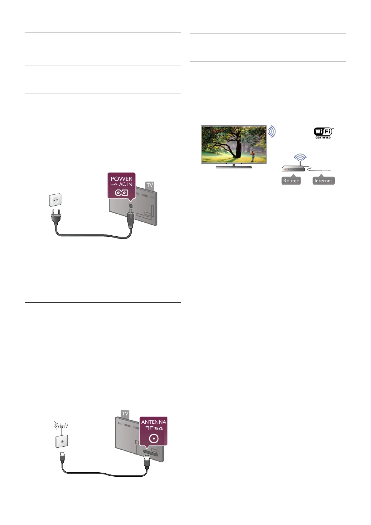 Sluit het netsnoer aan op de voedingaansluiting van de TV.
