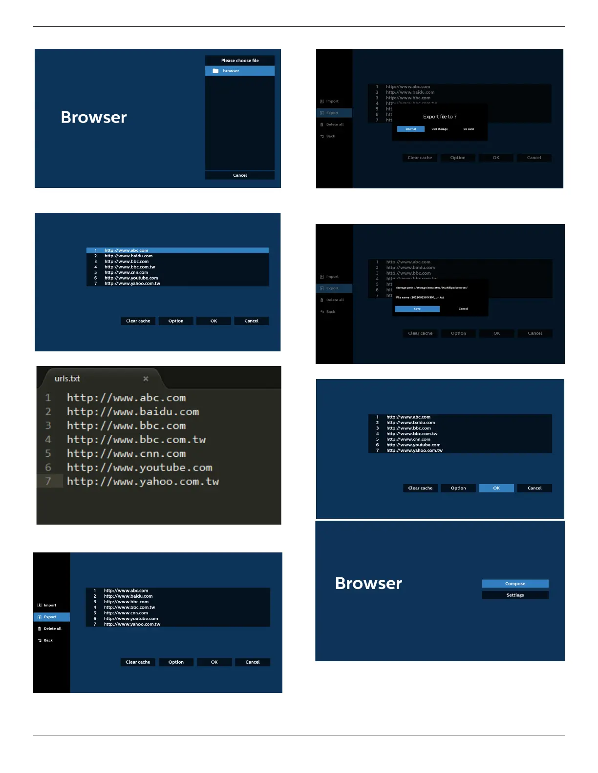 • Import the browser le and the URL will be listed on the