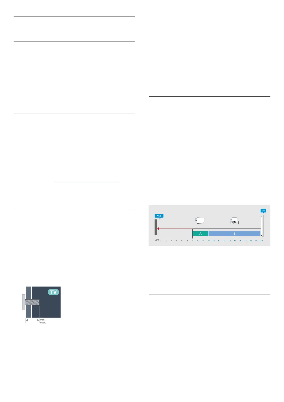 A. Bij montage aan een muur, plaatst u de TV tussen 7