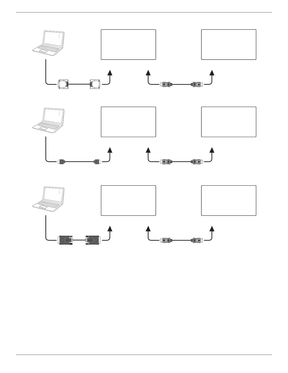 将笔记本电脑的 [HDMI] 连接到显示器 1 的 [HDMI 输入 ],将显示器 1 的 [DP 输出 ] 接口连接到显示器 2 的 [DP 输入 ] 接口。