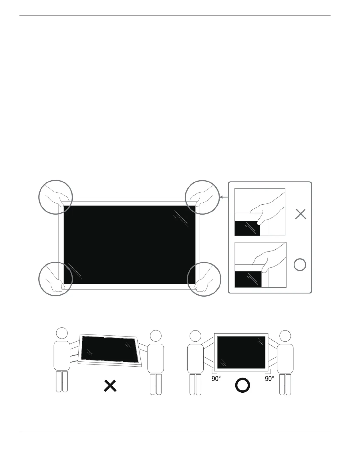 • 請抓取顯示器的邊框表面 ( 塑膠或金屬部分 )。