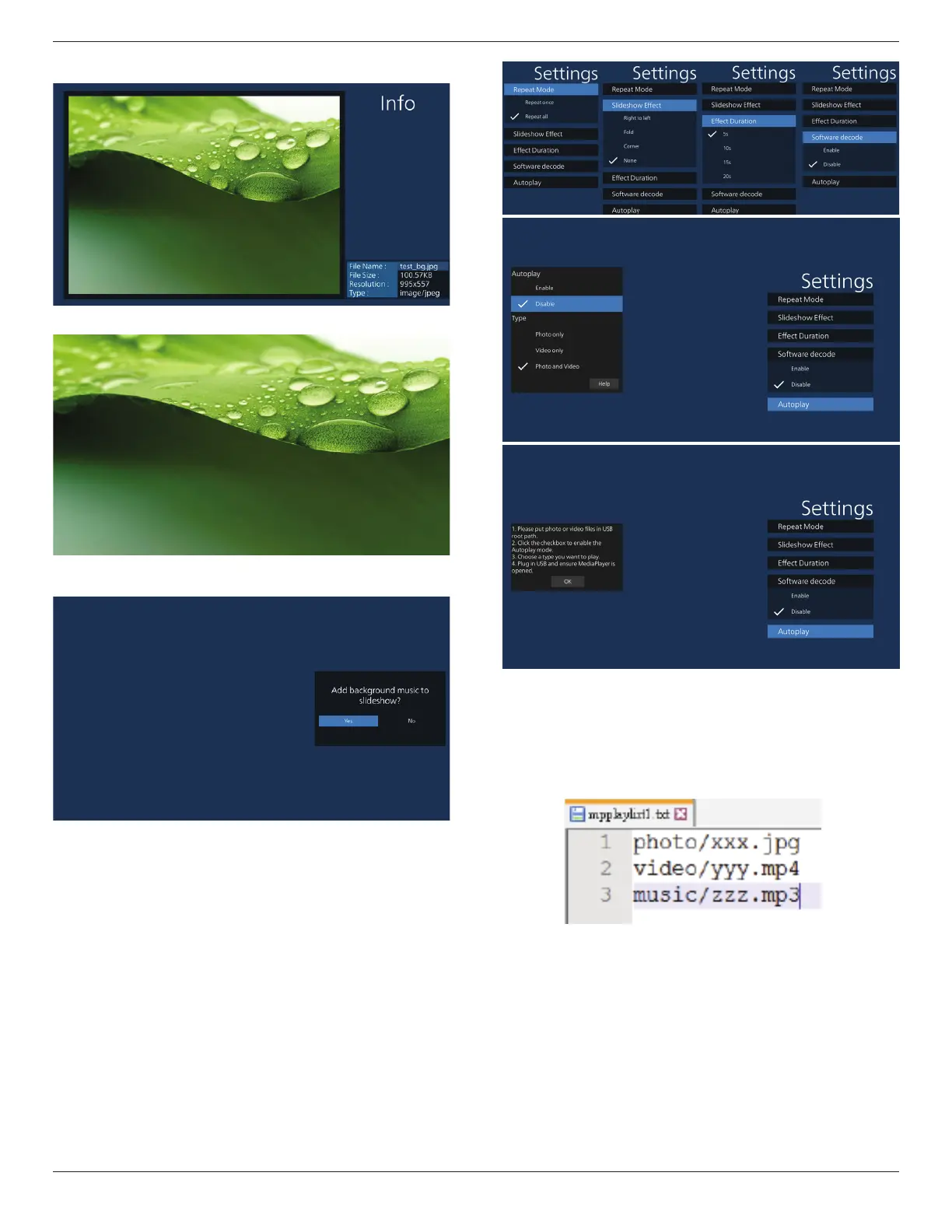 - Slideshow Effect ( 投影片效果 ):相片投影片效果。